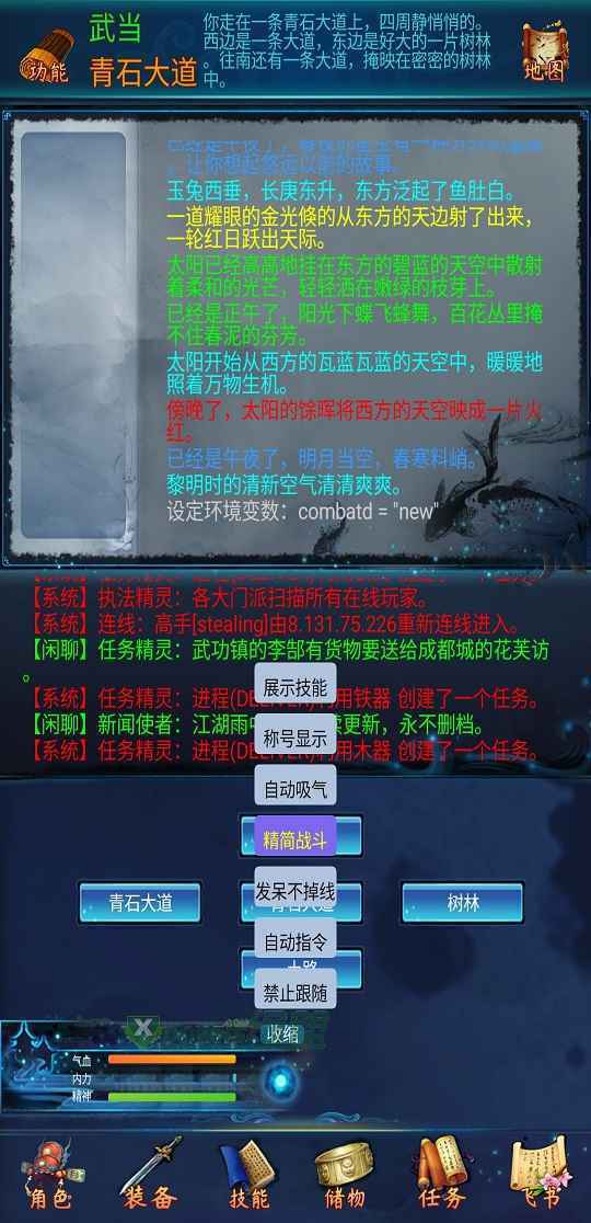 仙武奇缘录是一款水墨风格的仙侠手游,超唯美的游戏画风非常的赞,在仙武奇缘录中不断的打怪升级非常的炫酷,超唯美的场景,超宏伟的游戏环境很是酸爽,文字玩法没有真正的打斗场面,玩的是脑子,喜欢的朋友下载玩玩就知道了!