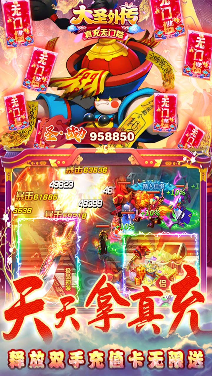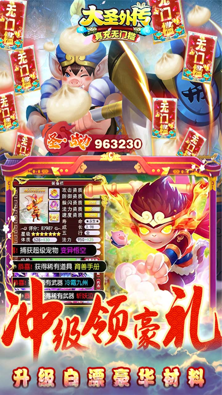 5.海量元宝超强福利,孙悟空、牛魔王、二郎神任你挑选。