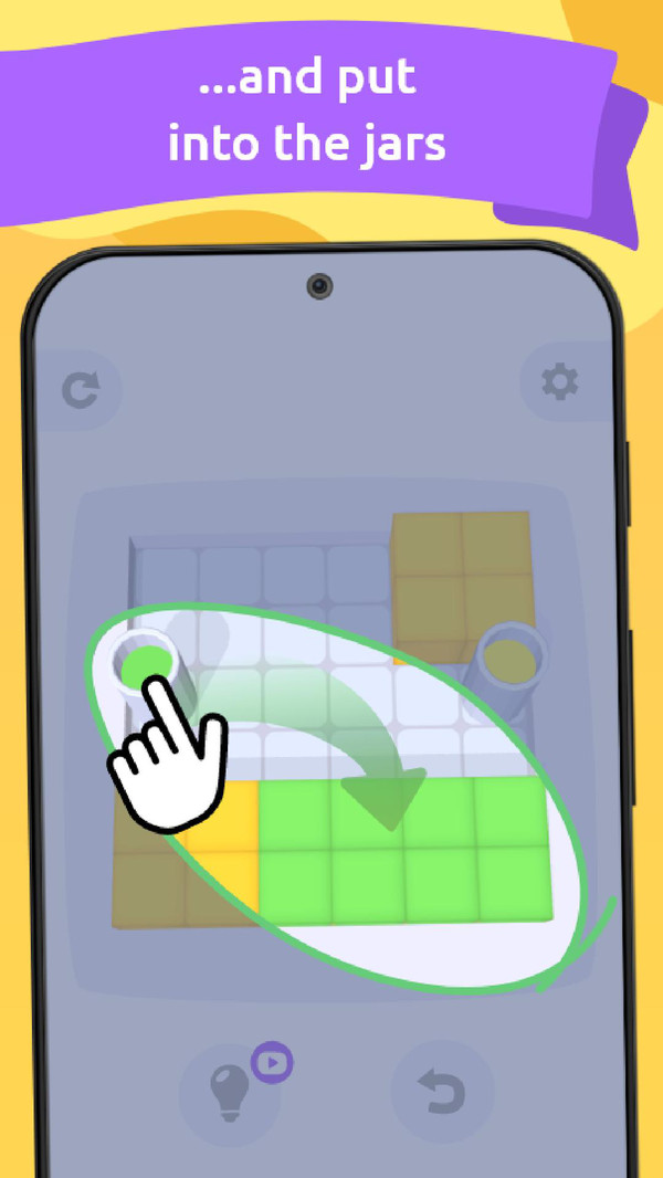 2、操作方块在游戏中移动,同时在罐子中收集果冻果冻,完成这场游戏挑战;