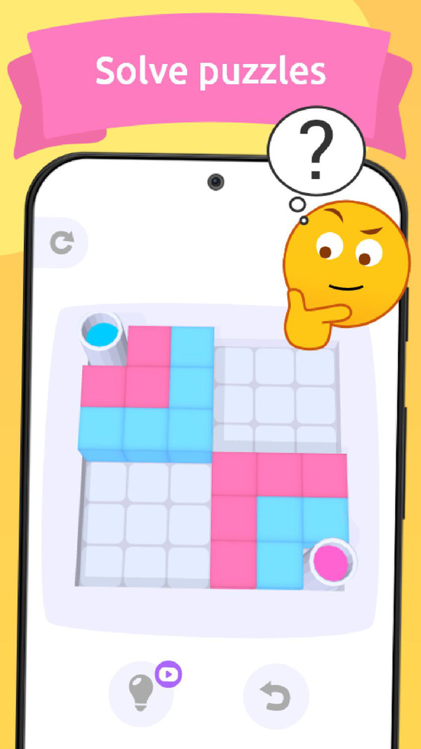 3、游戏世界中充满着障碍,思考不同的过关丰富,玩家需要找出正确的方式来拖动和合并果冻块。