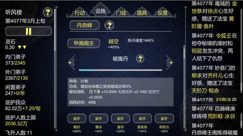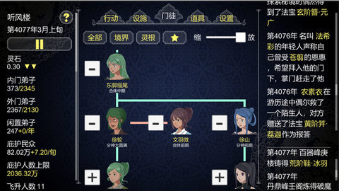 游戏中你需要做的就是,安排宗门的各种资源,
