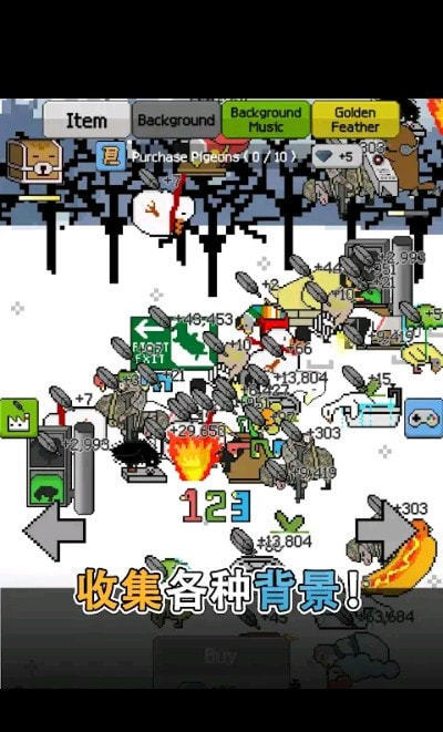 游戏可以选择不同的背景,各种环境下也会产生不同的鸽子。