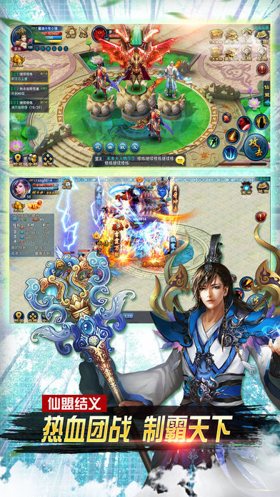 1、东方仙境世界,自由探索冒险,激情对决,收获更多的奖励;