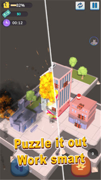 接受挑战并经营一家拆楼公司。尽可能快,高效地分解整个城市街区。利用连锁反应获得现金红利。您能否站在高分榜上并释放最长的连锁反应?