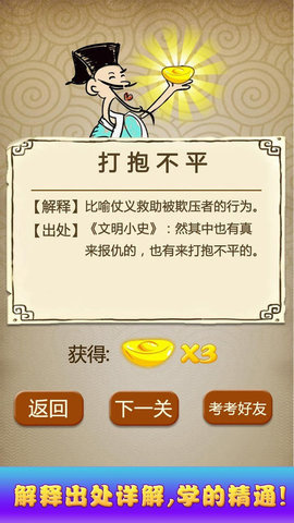 脑力比拼策略烧脑,超多各种各样的文字充斥,进行一场成语闯关挑战;