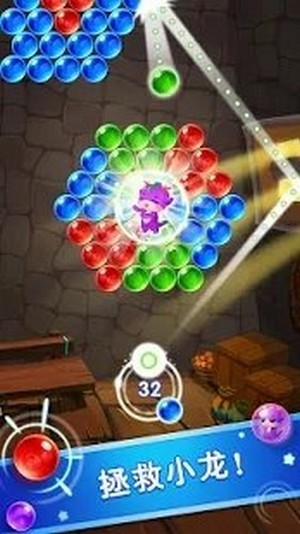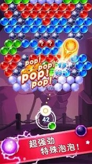 2、点击屏幕发射泡泡,功能泡泡就神奇消除,超级解压的一款游戏哦;