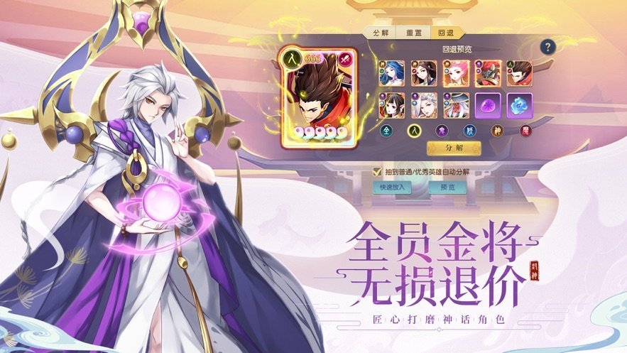 游戏中有着超多绝美的神话风格,这里有超过100多个东方角色,只要你熟悉的神话角色,这里都能找到,万充分利用每个英雄的属性和技能,自由组合,充分发挥其战斗力,丰富的玩法,注重游戏搭配,支持挂机玩法,高福利,让你离线也能升级!