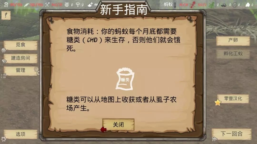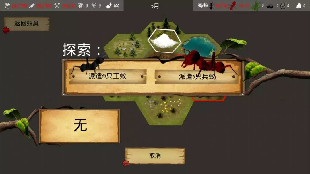 《最后的蚂蚁》一款回合制地牢建设游戏,你是游戏内蚂蚁军团的总指挥!一开始蚁群只有几个工蚁和王后。你的目标是发展足够大的蚂蚁窝!设计建设游戏随机生成的世界,每一次都有不同的挑战,建立8个不同的房间在你的殖民地,孵化士兵蚂蚁,战胜其他昆虫为更多食物。季节影响你能找到的食物,可以杀死的蚂蚁在冬季。