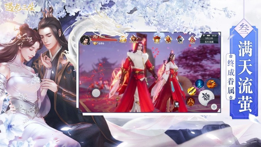 遇龙三生百恋成仙是一款非常浪漫的国风仙侠手游,遇龙三生百恋成仙中有着超多美轮美奂的广阔仙侠世界可供玩家自由探索和闯荡,同时还有真实的社交系统可以在线体验,各种炫酷精美的场景将会带给玩家极好的视觉体验哦!