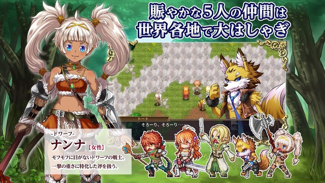 Ruinverse(RPG ルインバース)是一款传统日式RPG。玩家在Ruinverse中要和其他种族的几位小伙伴一起踏上冒险之路玩家能够在这一宽阔神秘的内地上肆无忌惮探寻,游戏中玩家将进入一个全新的幻想世界开启冒险之旅,玩家需要在这个幻想世界中进行冒险,四种种族职业设定人类、兽人、矮人、精灵,并且和强大的敌人进行战斗。