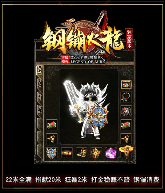 2.游戏尊重玩家的热情PK,不受PK掉落的装备的束缚;