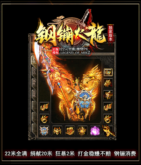 钢镚火龙传奇是一款超赞的复古打金传奇传奇手游,独有的火龙币1:1出售,但也是1:1回收,真正的公益传奇在钢镚火龙传奇中打金稳赚不赔,更有万米攻沙奖励,终极的爆率高达一百倍,喜欢的兄弟还在等什么?快来绿盟下载钢镚火龙传奇这款手游吧!