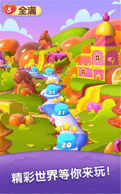 动并消除一行 3 个糖果,或者消除 4 个或更多糖果来生成美味的特殊糖果!在移动次数耗尽前完成目标,即可在趣味十足的美味关卡中一路高歌猛进。游戏方式就是这么简单易懂呦!滑动并消除美味的糖果来制作让人垂涎欲滴的组合,在洋溢着紫色苏打和糖果熊的游戏模式中挑战自我!孤身一人踏上这场充满苏打味的传奇之旅,或者与好友一较高下,瞧瞧谁能夺得最高分数!