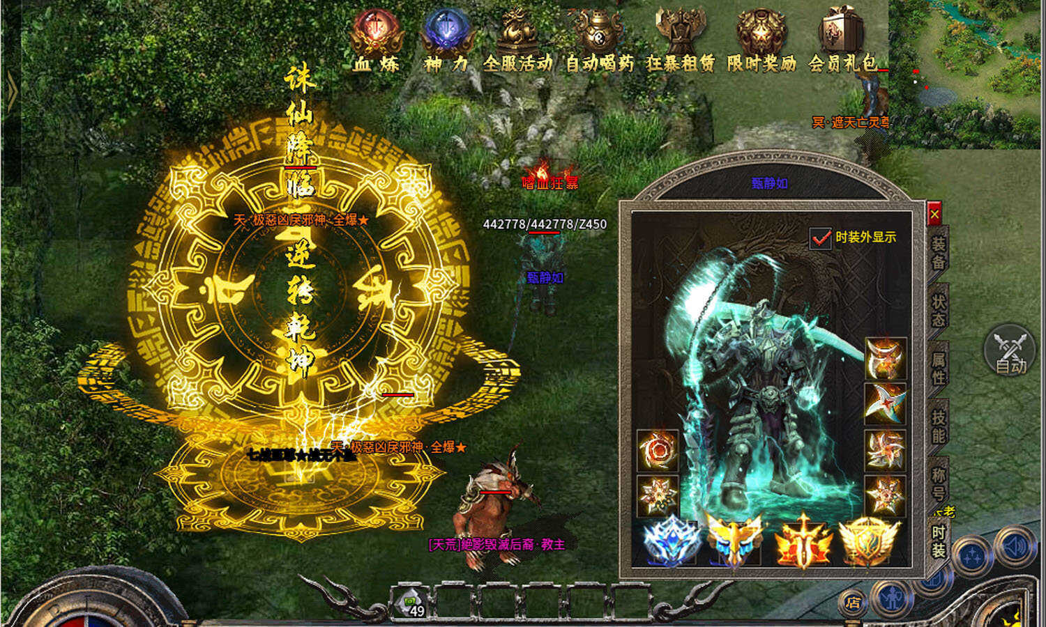 在禁地封魔NPC处进入副本,消灭魔怪可获得积分和海量的材料,达到一定的积分可以获得七彩石宝箱、禁地勇士称号、上古七彩石宝箱、异能结晶碎片、金条等超值道具。击杀魔王最高可获得巅峰级装备。
