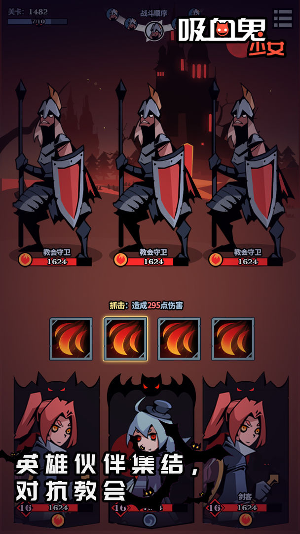 吸血鬼少女,游戏内都是会根据角色扮演的形式来进行设计的,玩家将代入到吸血鬼少女的角色当中,来开启属于你自己的冒险故事。在冒险的过程当中,还可以召集更多的英雄伙伴,共同来对抗教会,最后找到自己的家人,快来下载试试吧!