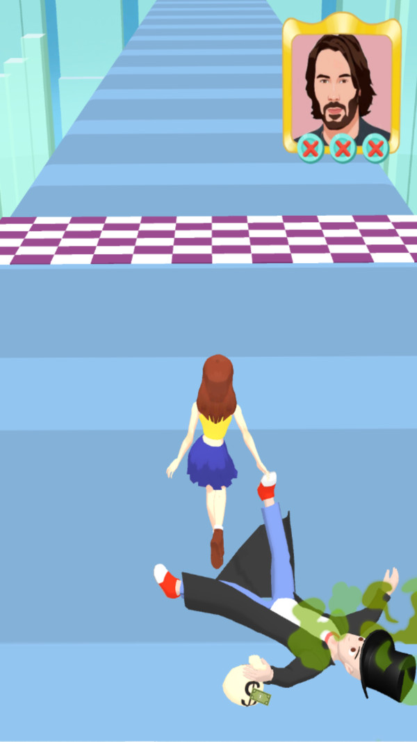 2、随处可见的收割机,一定要躲避哦,否则头发会剪短,头发越长到终点奖励越丰厚;