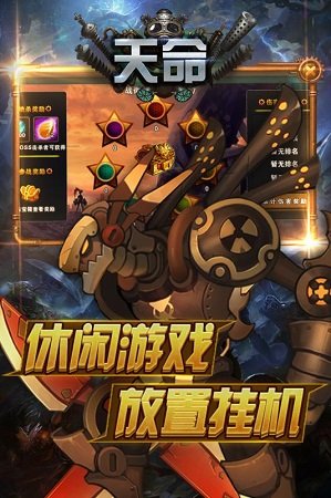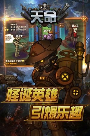 天命是一款放置休闲类的卡牌挂机手机游戏,蒸汽朋克风格使人身临其境体验到这个游戏世界的复古和沧桑感。这个游戏有让人爆笑的剧情对话和搞怪的英雄。刺激的关卡挑战,更有震撼的军团战争等你来战。强者PK跨服激战,一切尽在天命。