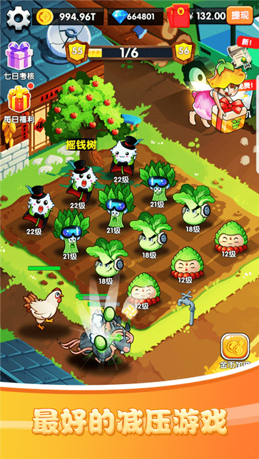 全民打怪物红包版是一款战略塔防游戏。轻松有趣打怪物,随随便便赢红包。种植各种蔬菜水果来攻击偷偷进入农场的各种怪物,简单的放置玩法,安排好策略就看植物水果表演就行,战胜怪物完成任务就能获得红包奖励,策略塔防加上惊喜红包,简直双厨狂喜呀!