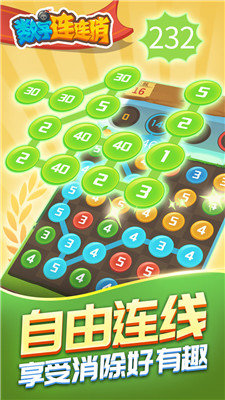 1、需要一根手指点击屏幕就可进行连线数字,组成三个一样的就能消除