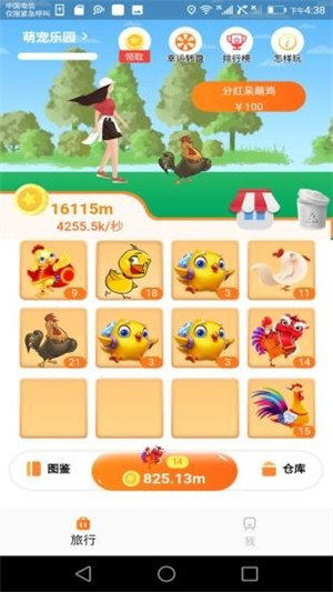 鸡行天下红包版是一款休闲的养鸡赚钱游戏。鸡行天下游戏里,玩家可以养可爱的小鸡仔,然后合成更多种类的小鸡,边玩边赚钱。