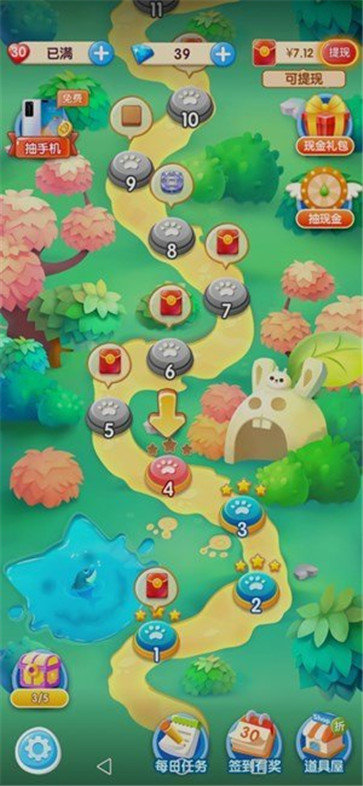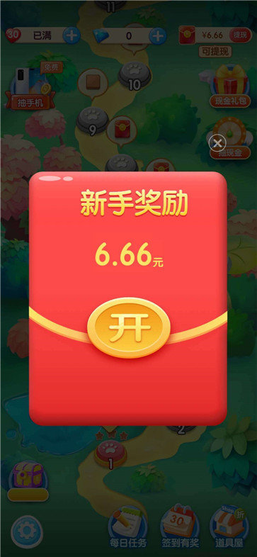 1、完成每个关卡的任务后都能领取一个红包,可以吸引玩家继续玩游戏;