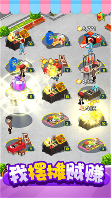 1、我摆摊贼赚红包版通过赚到的钱你可以建立新的摊位,这是平时都不敢想象的;