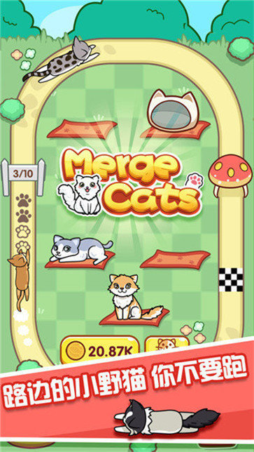 你可以通过合成来让两只相同的猫咪合成为大的猫咪,猫咪可以直接生崽赚钱。