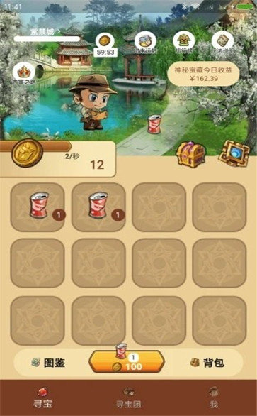 2、将两个相同等级的宝物合成升级即有机会获得现金奖励和随机分钟的神秘宝藏