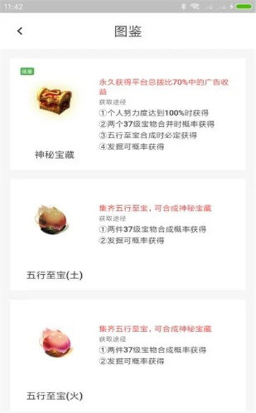 2、等级越高的宝物,为你带来更多的福利,看着宝物成长升级,很有成就感。