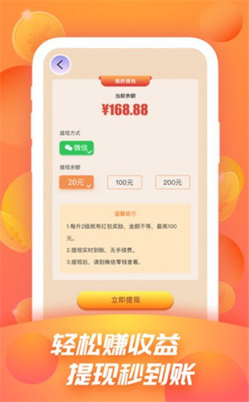 1、兑换成更大的红包,能带给玩家有趣玩法,积累足够金币去获得更大的收益。