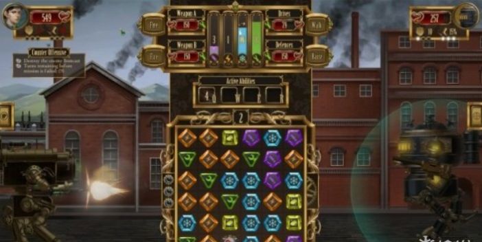 一款极具策略性的回合制消除游戏,这里的关卡有很多,每个玩家都能感受一把消除的乐趣,在一次次的消除中帮助机甲填充弹药,只有变得更加强悍了之后,你的机甲才可以打败对手,获取鞥更多的奖励,游戏的整体画风看起来像是蒸汽朋克机甲的战场一样,极具代入感!