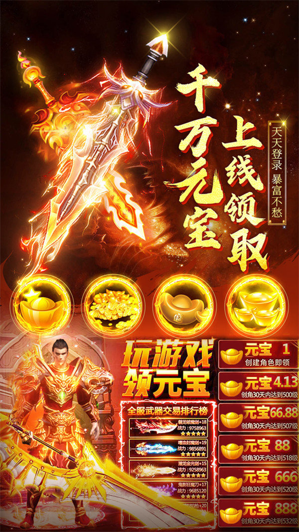 丰富多样的BOSS玩法,体验疯狂刷BOSS的快感;PK必爆炫装,带给你熟识的传奇体验!