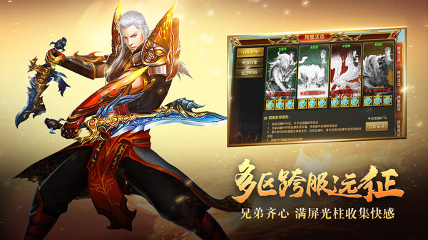 3、自由交易,跨服激战,兄弟组队团战,热血激烈,超多副本BOSS挑战抢夺盛装利器。