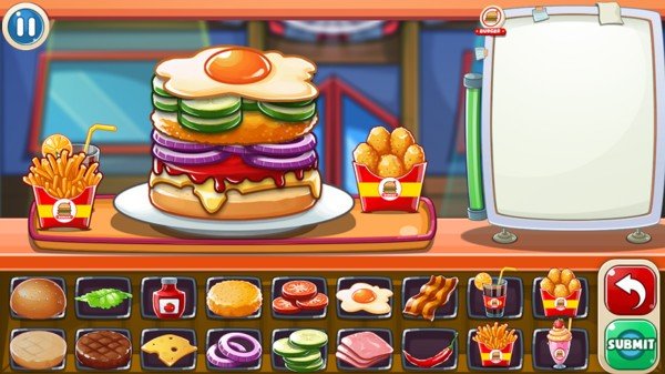 3,游戏中,玩家需要在规定的时间内来完成客人的菜单。游戏的后期,完成事物的时间就会越来越短,游戏的玩法也更加的多种多样。