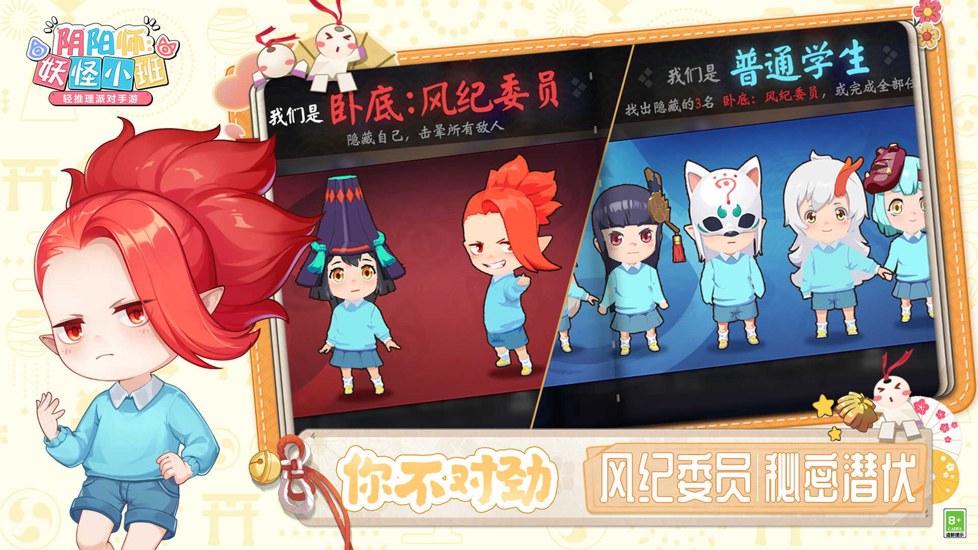 1、你将扮演萌崽小妖怪入学阴阳师百鬼幼儿园,体验奇幻的萌妖学园生活;
