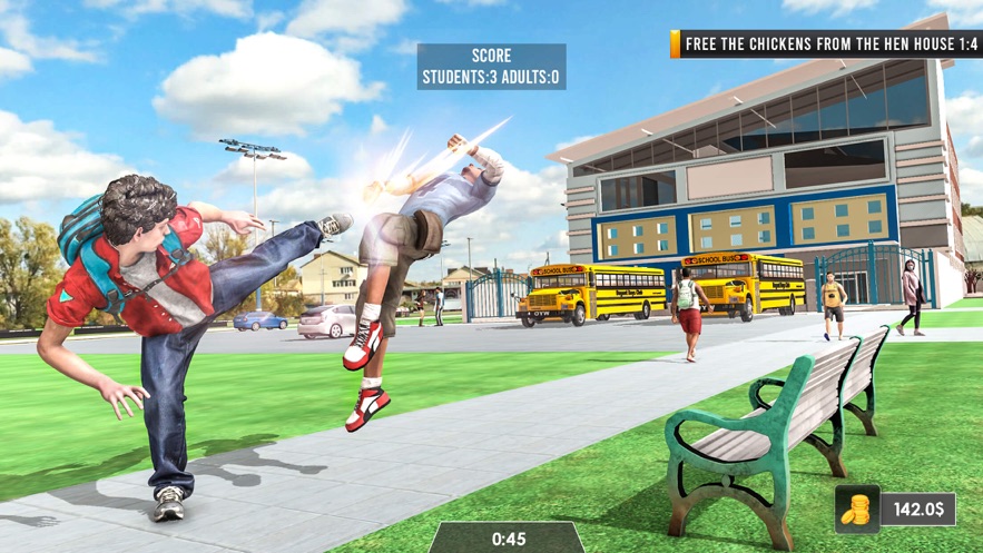 1、非常真实的格斗玩法,自由施展你的技能,打败那些学生们;