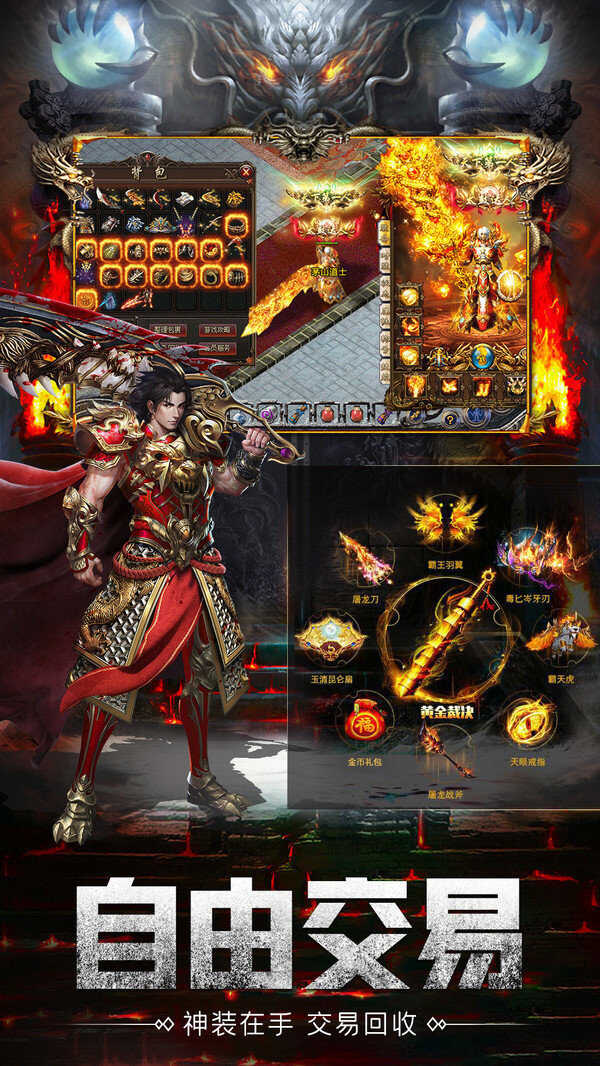 技能全新搭配,自由度超高,全新玩法,boss也可以爆出屠龙刀,复古传奇等你体验。