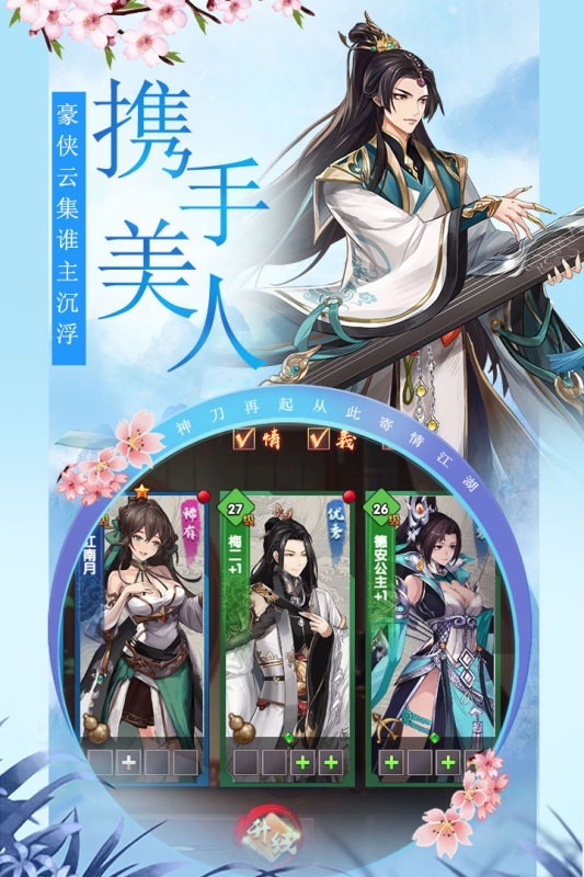 各种各样经历的武侠人物相继出现,自由的选择它们进行冒险挑战。