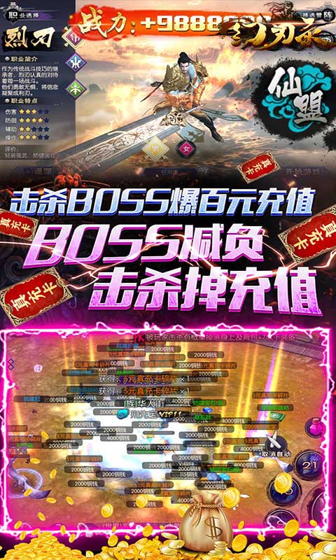 幻刃录(送大额真充卡)是一款以盘古开天后人妖仙魔九界共存为背景的古神话题材ARPG,丰富的剧情,极具代入感的故事背景开启古神话世界,该游戏为全新重置版,经典与创新的结合玩法,新增充值卡活动让你在游戏中征战古神豪不费力。★每日上线领真充抽奖券★升级送充值★BOSS爆充值。一切为了增强您的游戏体验,玩游戏根本不用花钱。快来感受中国特色的古神世界。