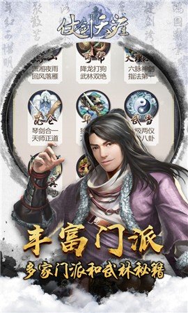 海量门派——真实还原武林各大门派江湖恩怨,24个正邪门派等你来虐。每个门 派都有属于自己的特殊武学、独特技能杂学,一统江湖不是梦。