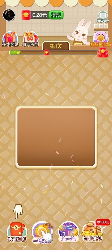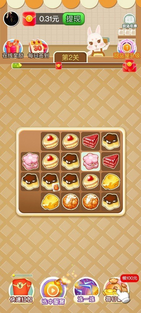 每一关都会有不同的甜点需要玩家淘汰。只要完成关卡挑战,就能获得现金满满的红包奖励,每天签到还能收到红包。