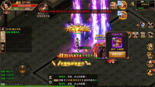顶尖的技术引擎为你带来一片气势恢宏的仙界场景,尽情弛聘在这片热血的世界中。充满激情的战斗模式值得所有玩家进行体验,成百上千的玩家为你演绎新的热血。广阔的玛法大陆有着各种机缘等待着你,或许还能让你继承一些特殊的神力传承。经典职业在这里完美重启,各种绚丽的招式技能交相辉映,构建全新的热血战场。
