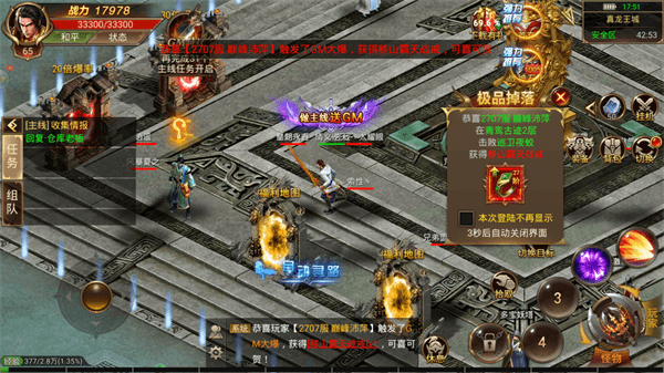 2.探索秘境,经典玩法,超高爆率,小怪也能掉落遍地神装,平民玩家也有好的体验;
