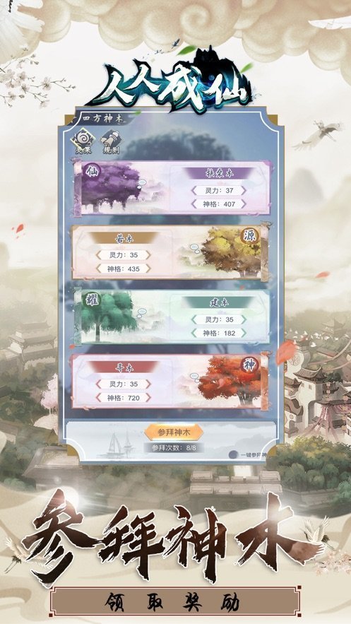 人人成仙游戏是款放置挂机修仙类手游,拜入师门,闯荡遗迹,享受参拜神水的活动,学习武功秘籍,上线就送福利,在最新的版本还加入了情缘双修的系统,结识异性伴侣自由的驰骋在仙界,独特的玩法操作,创建或者加入门派,组队去世界历练,收集装备吗,炼制神丹妙药吧!