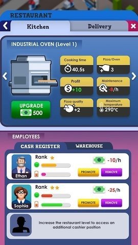 披萨帝国大亨是一款主打披萨店经营玩法的手机游戏,通过开分店来提高城市的知名度,为顾客们提供美味的披萨,一步步来营造最大最知名的披萨店,你还在等什么呢,赶快来下载试试吧。