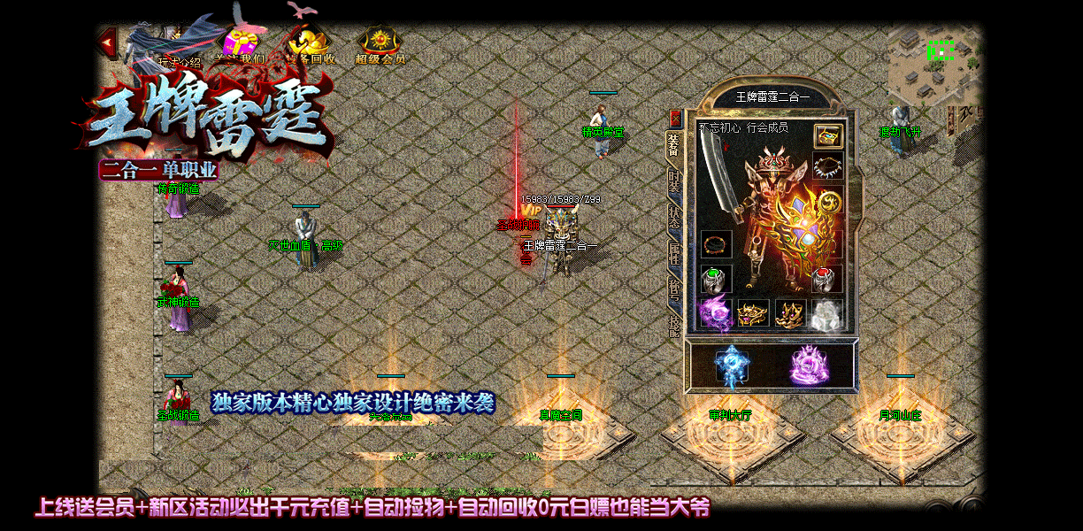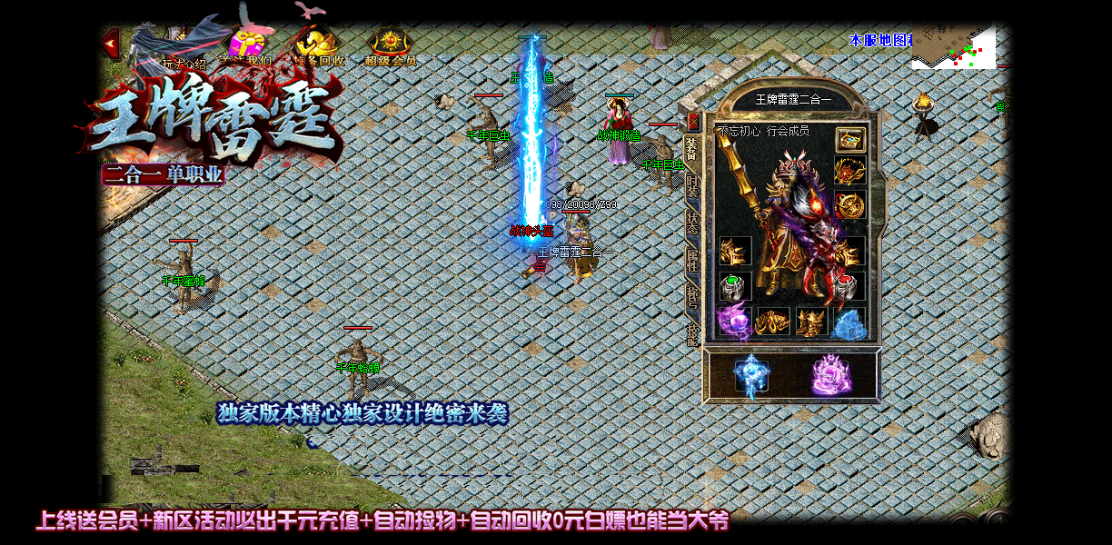 王牌雷霆二合一单职业是一款玩法模式全新的手机传奇游戏打宝快,自动捡物回收,散人也可以轻松玩转,快来下载试试吧。