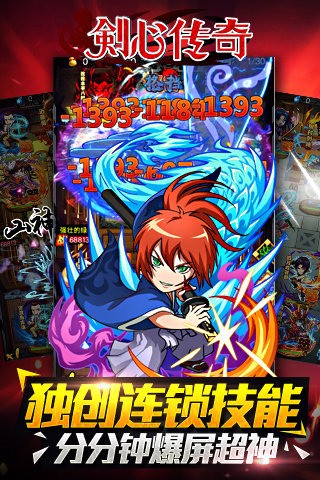 首款独创爆屏连锁技能手游火爆来袭!剑心传奇改编自超人气日本动漫,角色设计采用Q版画面百分百还原动漫原型,以立体人物形象带给你最美的视觉享受、最轻松的操作、最具满足感的全方位游戏体验。二大主角、一百多个个S级立体伙伴,自由搭配,随心所欲组合最强阵容;独创连锁技能、享受爆屏乐趣!