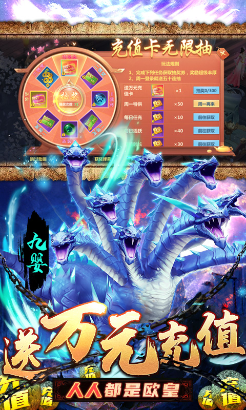 4.每日活跃白嫖万元充值抽奖券,海量充值无限抽,更有300抽保底必出10000元充值卡,欧皇弹幕漂不停!