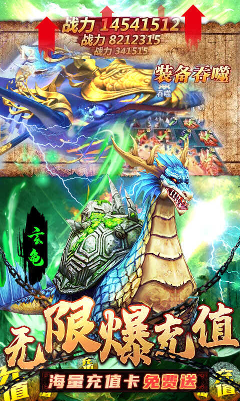 4.挂机自动战斗,离线也能升级,还能爆充值,挑战真正的异兽吞噬。