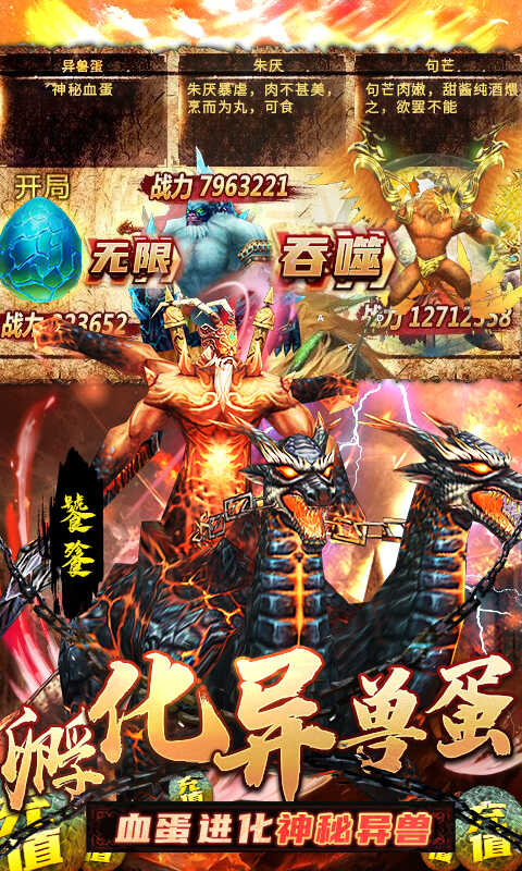 2.经典的封神和山海经题材,海量异兽解锁驯服,吞噬进阶突破境界。